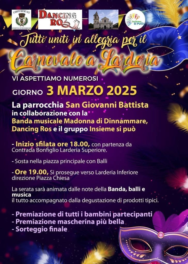Tutti uniti in allegria per il carnevale a Larderia